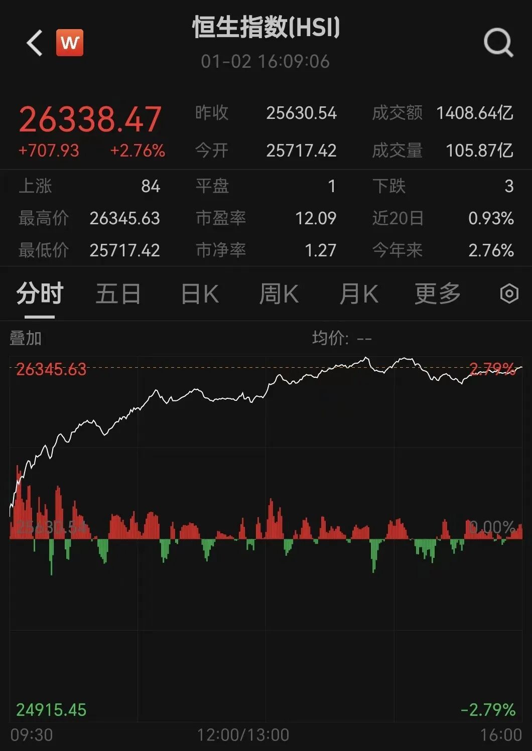 1月2日,港股 开年大涨 ,恒生指数收涨2.76%,恒生科技指数涨4%。