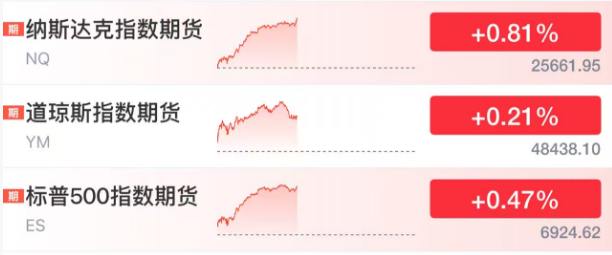 美国股指期货在盘前走高:标普500指数期货上涨0.47%,纳斯达克100指数期货上涨0.8%,道琼斯工业平均指数期货上涨0.2%。